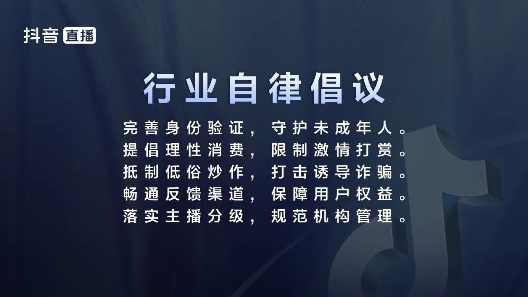 抖音直播联合中国网络社会组织联合会、中国网络视听节目服务协会、中国演出行业协会发起《行业自律倡议》。